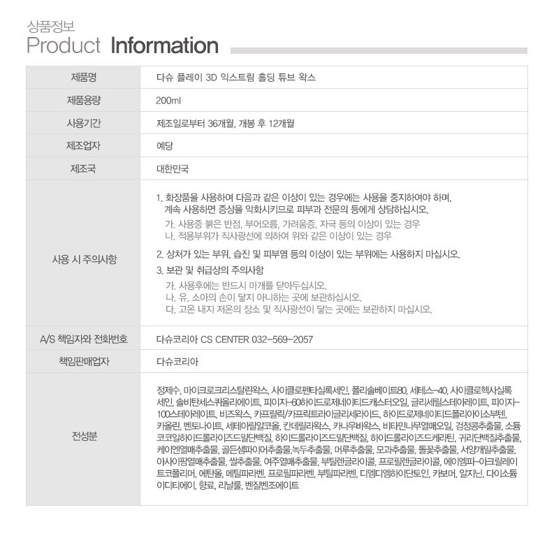| 화장품제조업자, 화장품책임판매업자 및 맞춤형화장품판매업자 | 컨텐츠 참조 | 제조국 | 한국 |