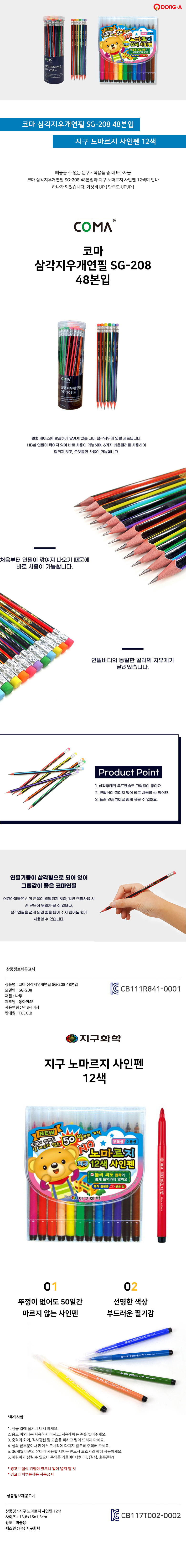 계좌이체- 구성품: 코마 삼각 지우개 연필 SG-208 48p + 지구화학 노마르지 12색 사인펜