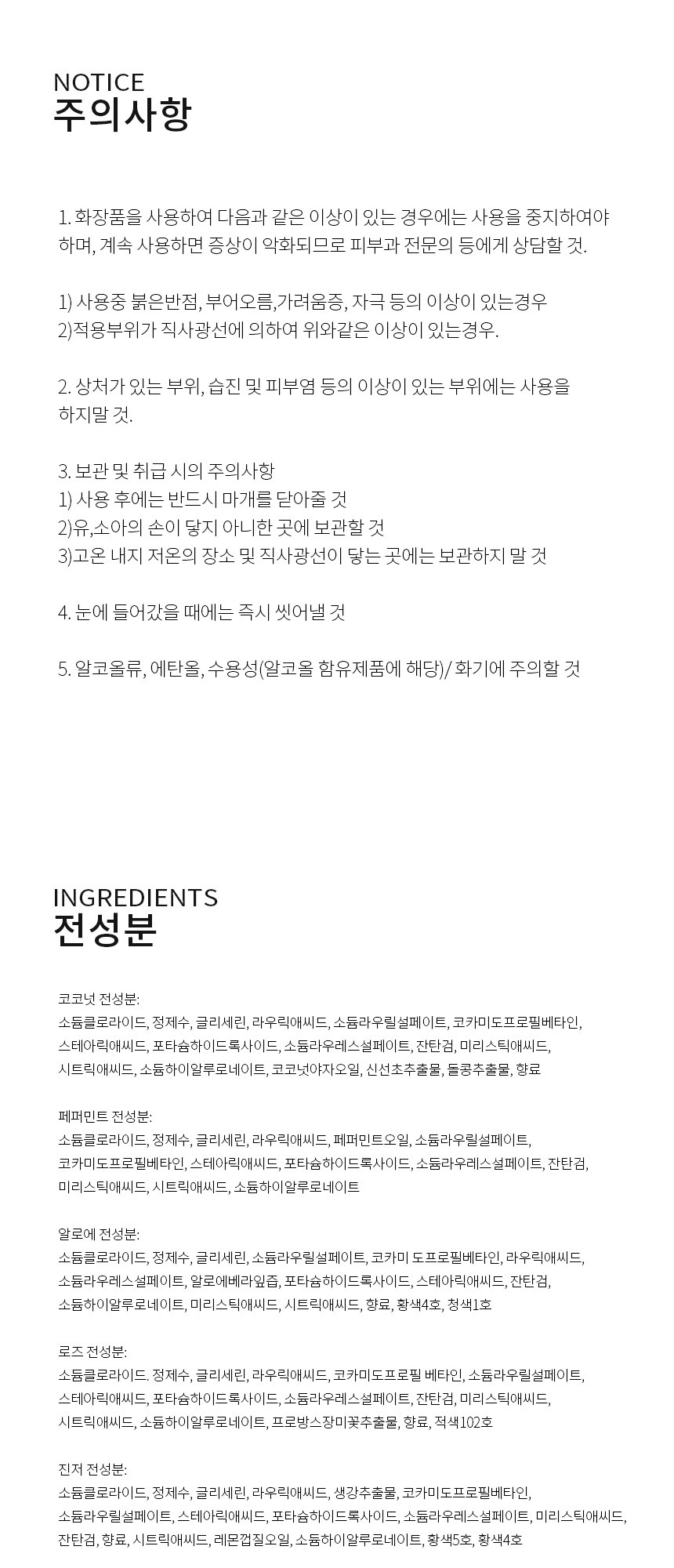 | 용량(중량) | 1kg | 제품 주요 사양 | 모든 피부용 |