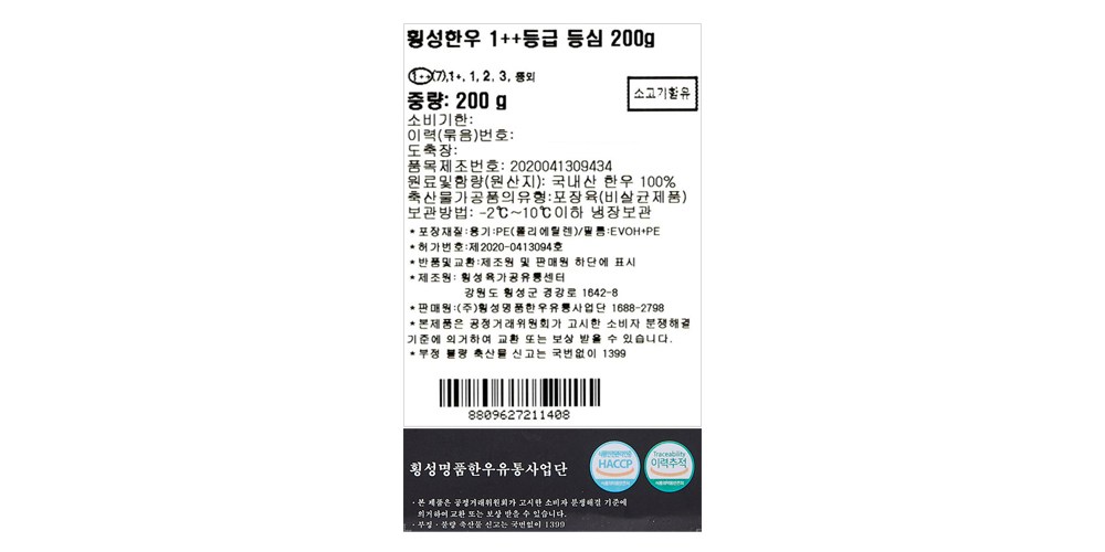 | 소비기한 또는 품질유지기한 | 소비기한(또는 유통기한) : 2026년 01월 15일 이거나 그 이후인 상품 | 세부 품목군별 표시사항 | 축산물 등급표시: 1++등급(7) / 이력번호 표시유무 - 이력번호 표시제품임 |