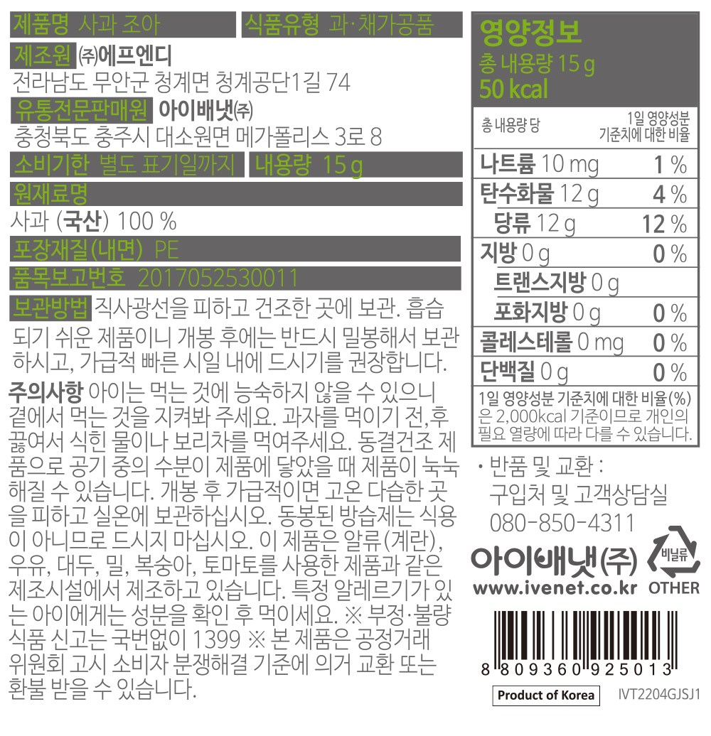 | 포장단위별 내용물의 용량(중량), 수량 | 15g x 8개 | 원재료명 및 함량 | 컨텐츠 참조 |