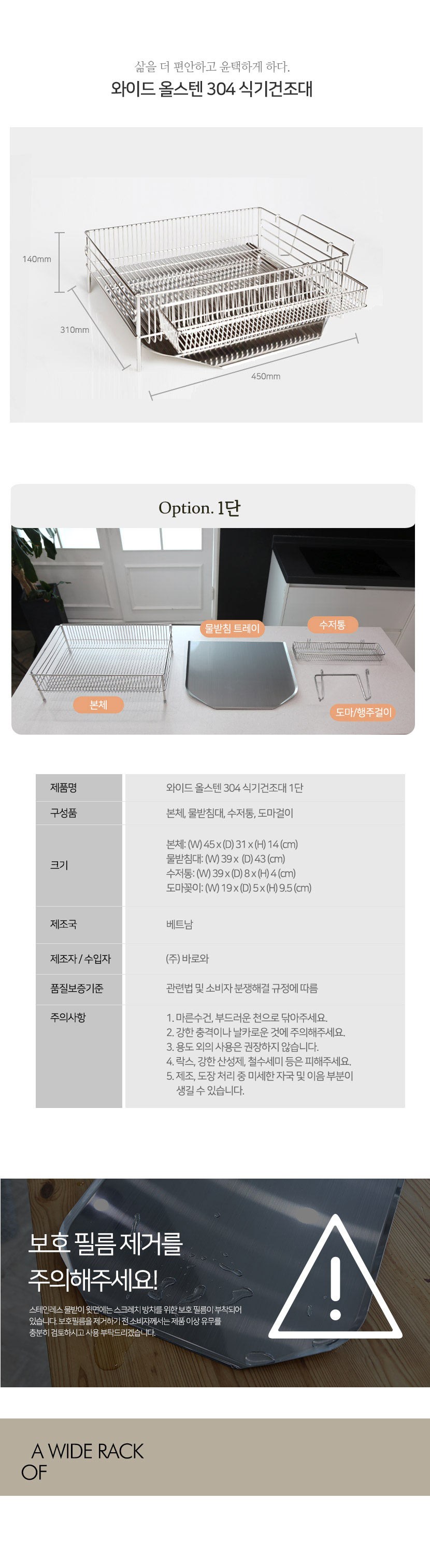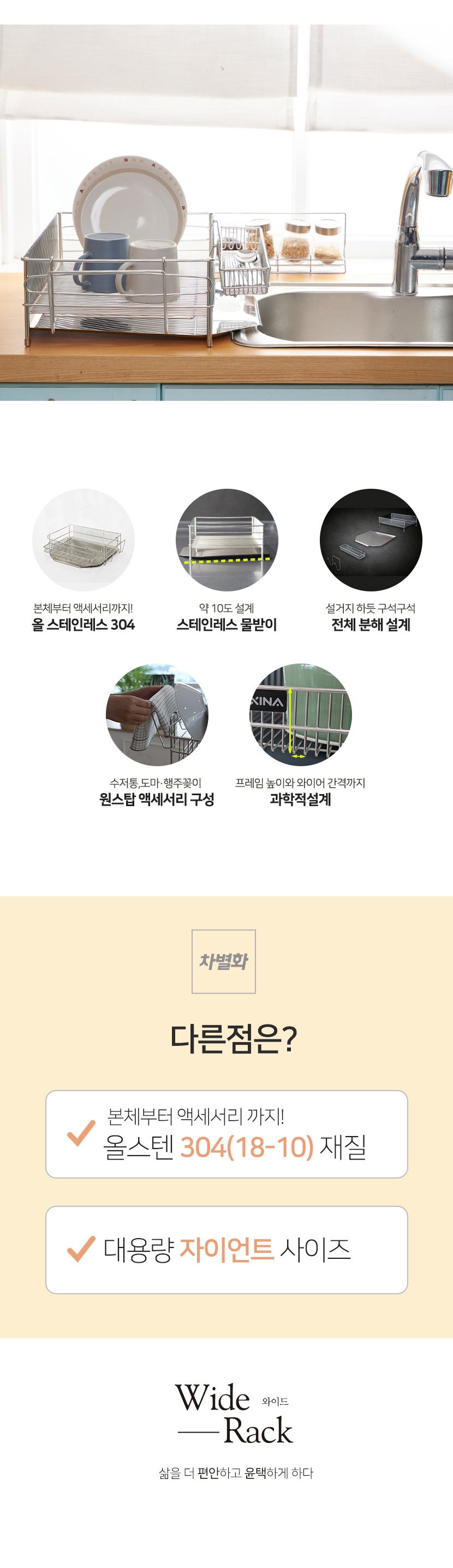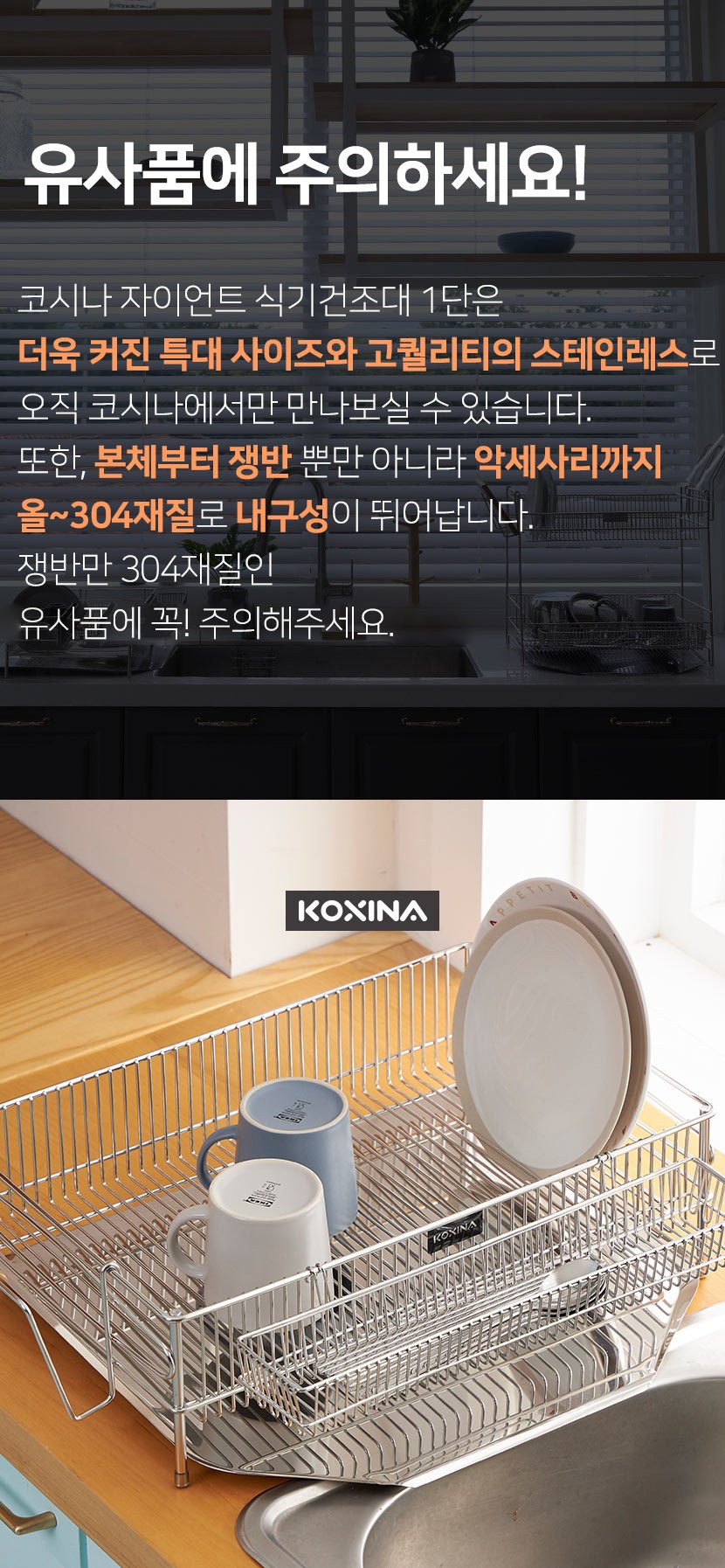 | 품명 및 모델명 | 코시나 자이언트 특대형 올스텐 304 식기건조대 1단 | 재질 | 스테인레스 304 |