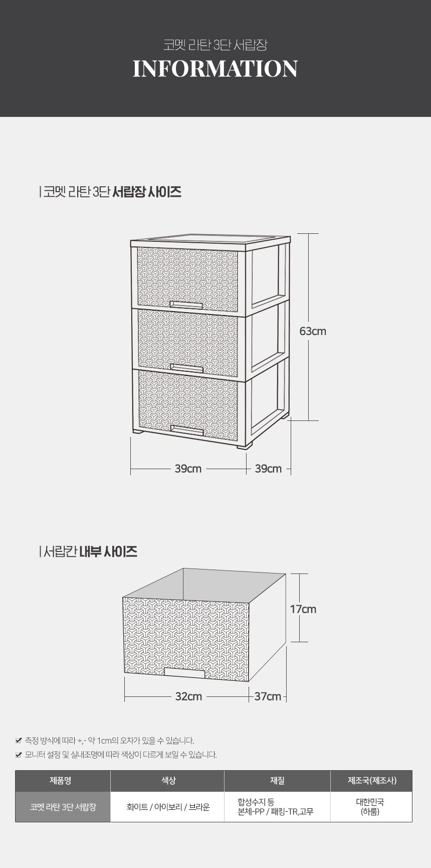 | 품명 및 모델명 | 코멧 3단 서랍장 아이보리 | 인증/허가 사항 | 해당없음 |