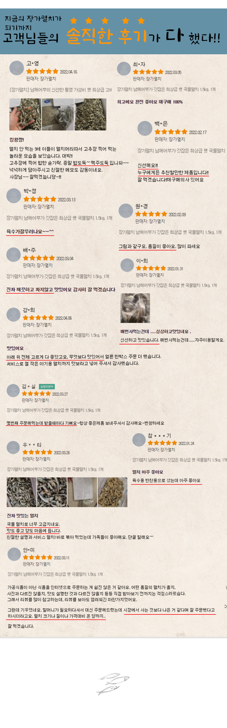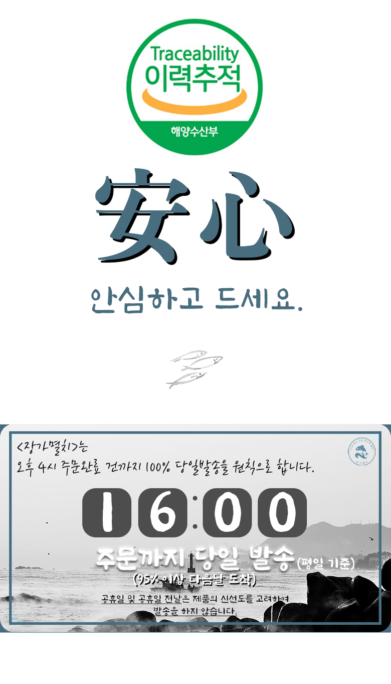 | 생산자(수입자) | 장가멸치 | 원산지 | 남해안 통영 |