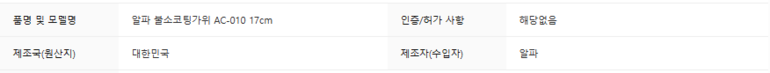 | 품명 및 모델명 | 상품 상세페이지 참조 | 인증/허가 사항 | 상품 상세페이지 참조 |