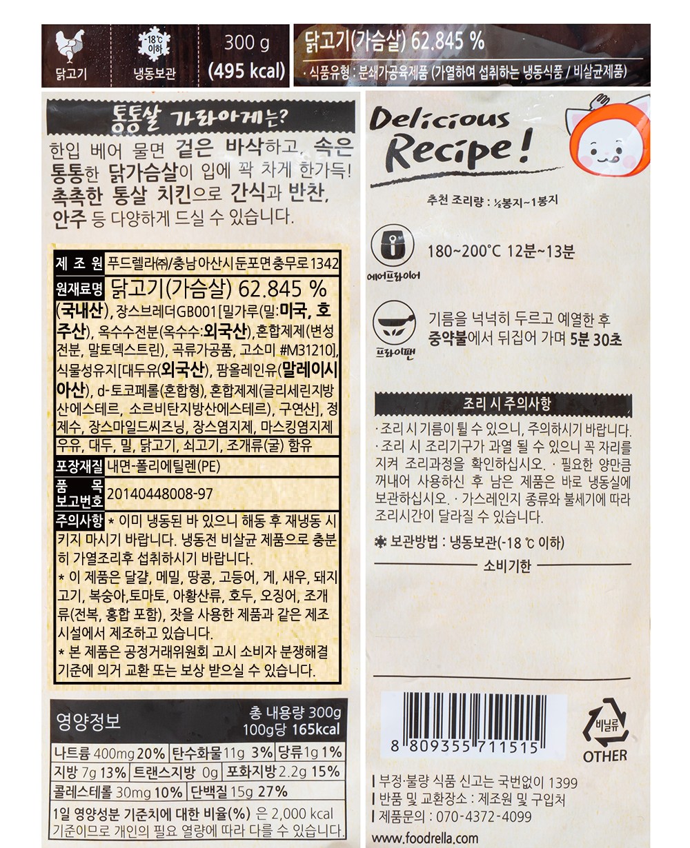 | - 신선한 닭가슴살로 만든 치킨 | |