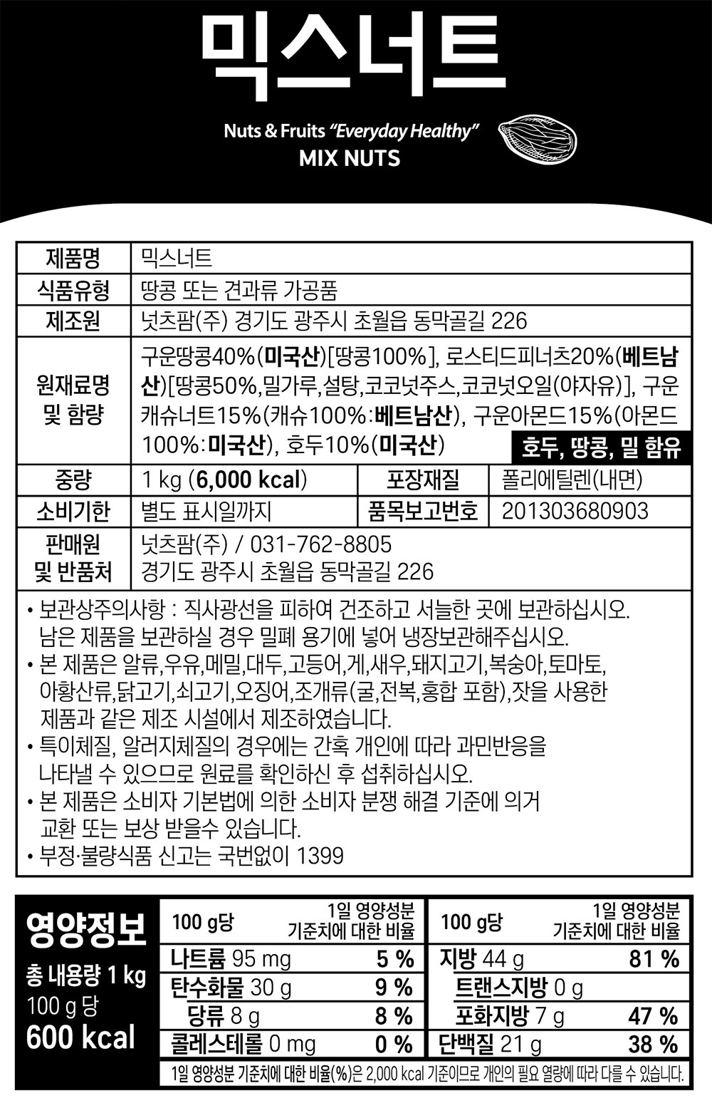 | 포장단위별 내용물의 용량(중량), 수량 | 1kg, 1개 | 원재료명 및 함량 | 컨텐츠 참조 |