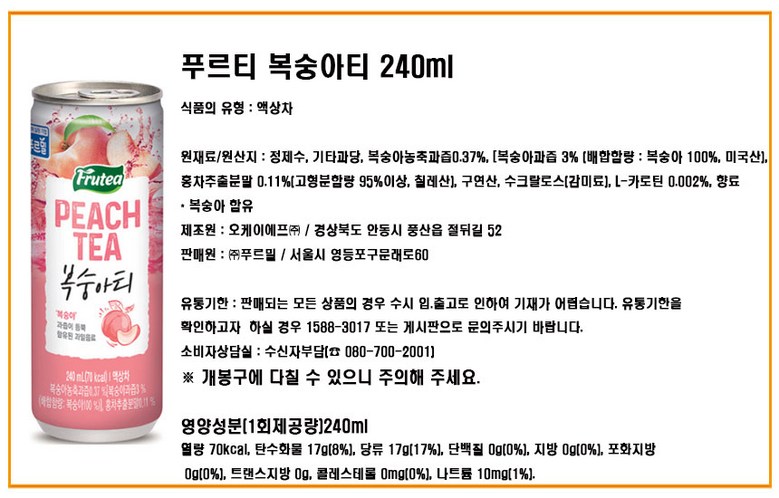 - 맛: 복숭아맛