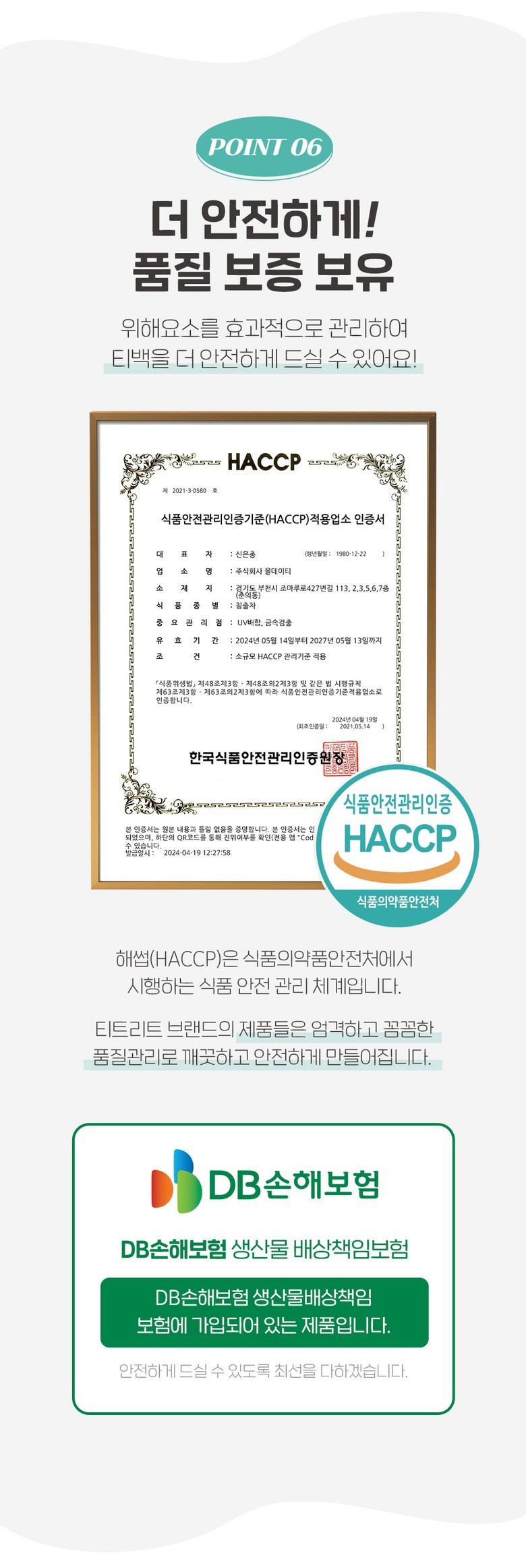 | 생산자 및 소재지 | 상품 상세페이지 참조 | 제조연월일, 소비기한 또는 품질유지기한 | 상품 상세페이지 참조 |