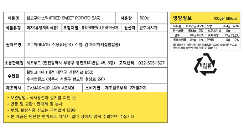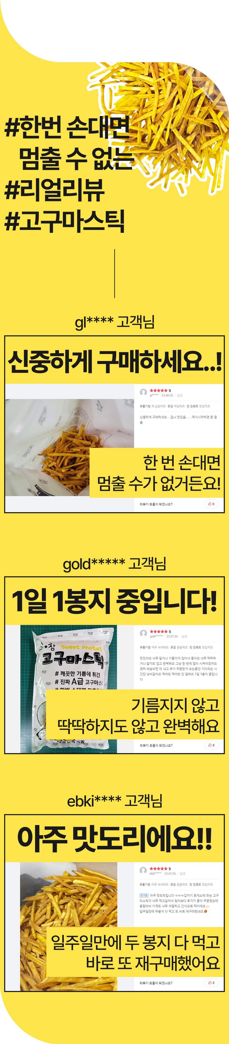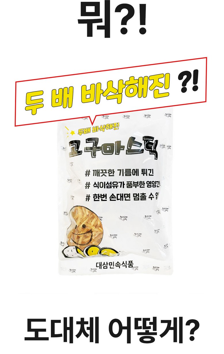 | 제품명 | 대삼민속식품 고구마스틱 | 식품의 유형 | 상품 상세페이지 참조 |