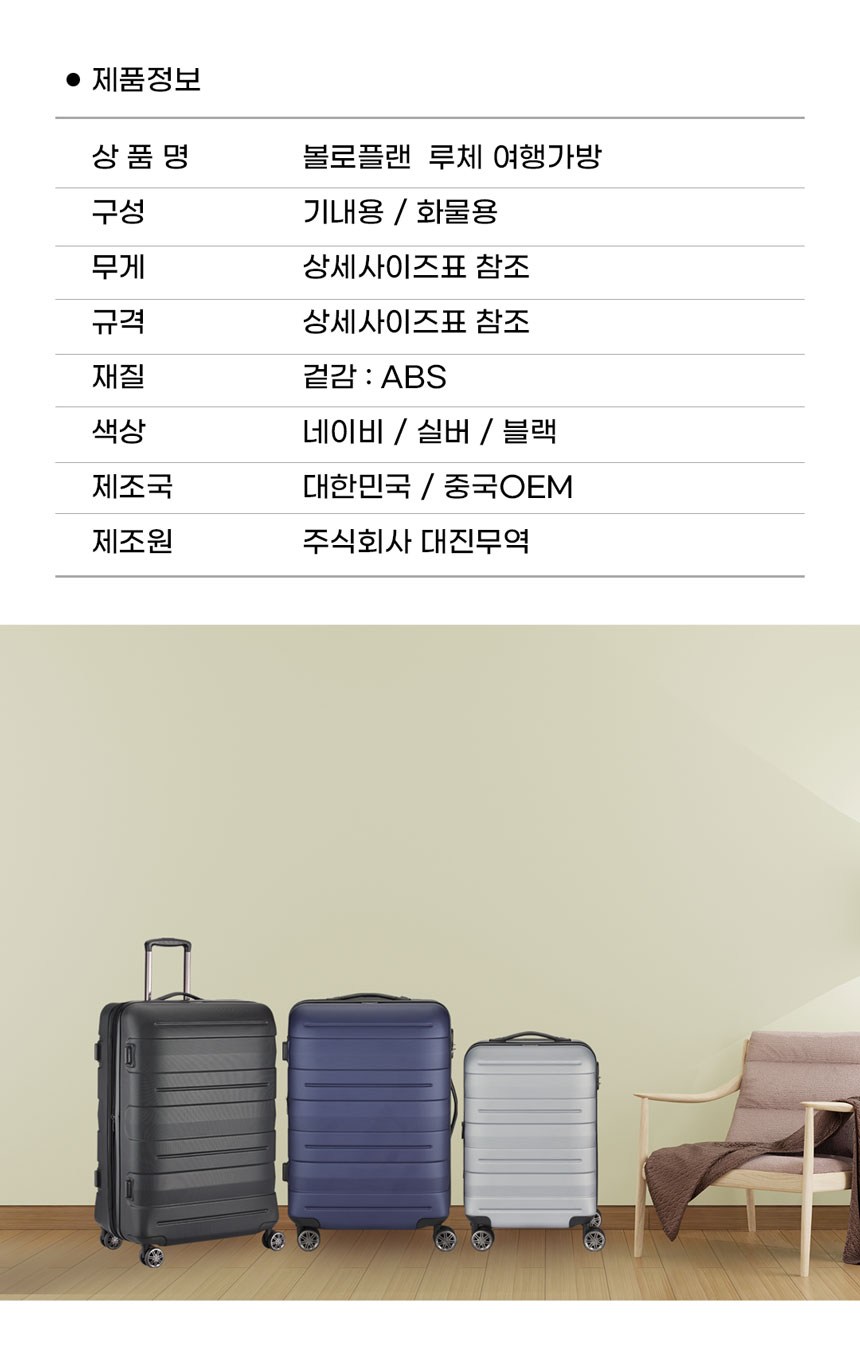 | 종류 | 여행용가방 | 소재 | 컨텐츠참조 |