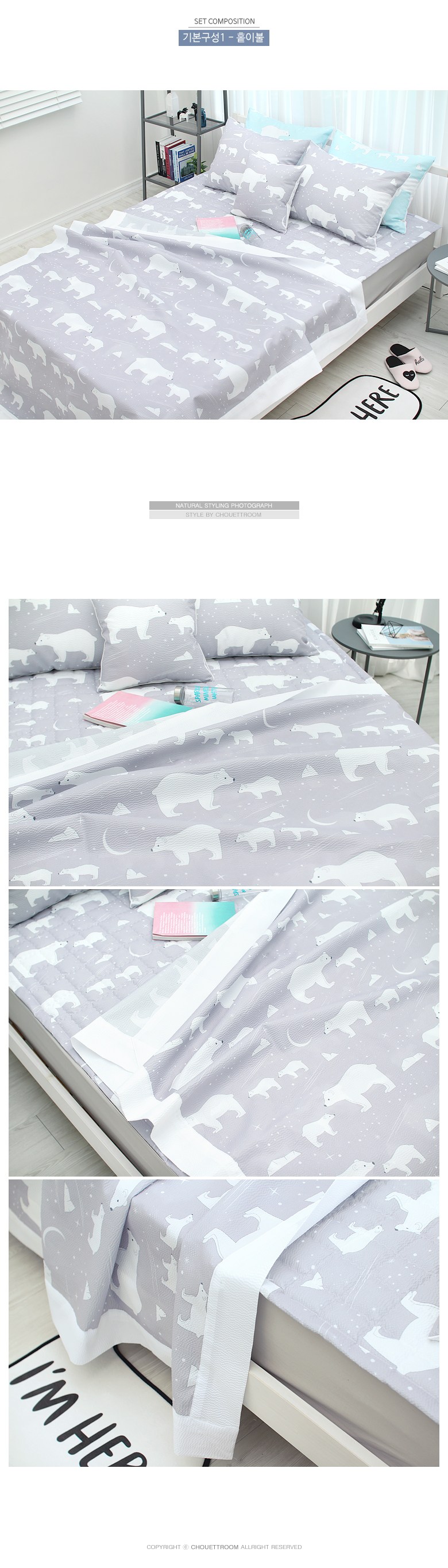 - 북극곰 패턴 디자인으로 귀여운 실내 분위기 연출