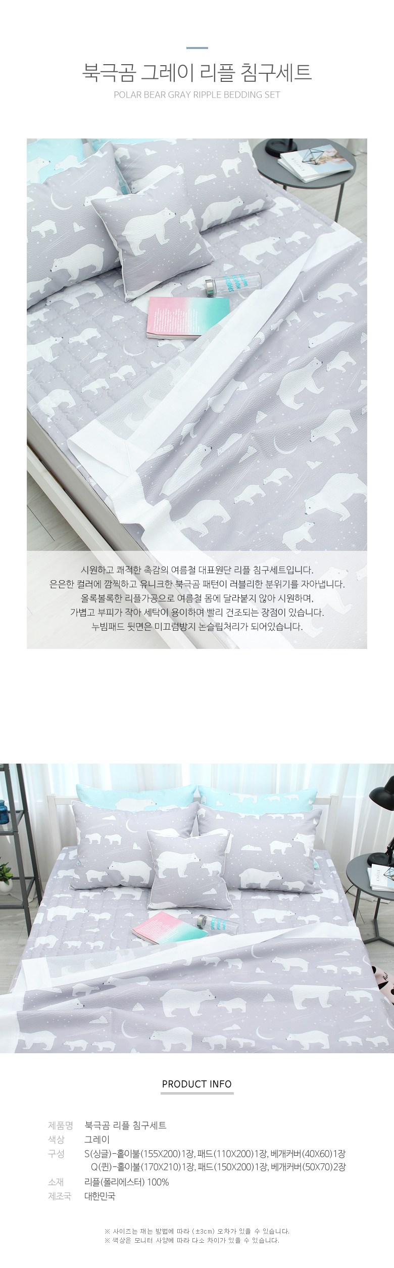 - 가볍고 세탁이 편리해 여름철 사용하기 적합