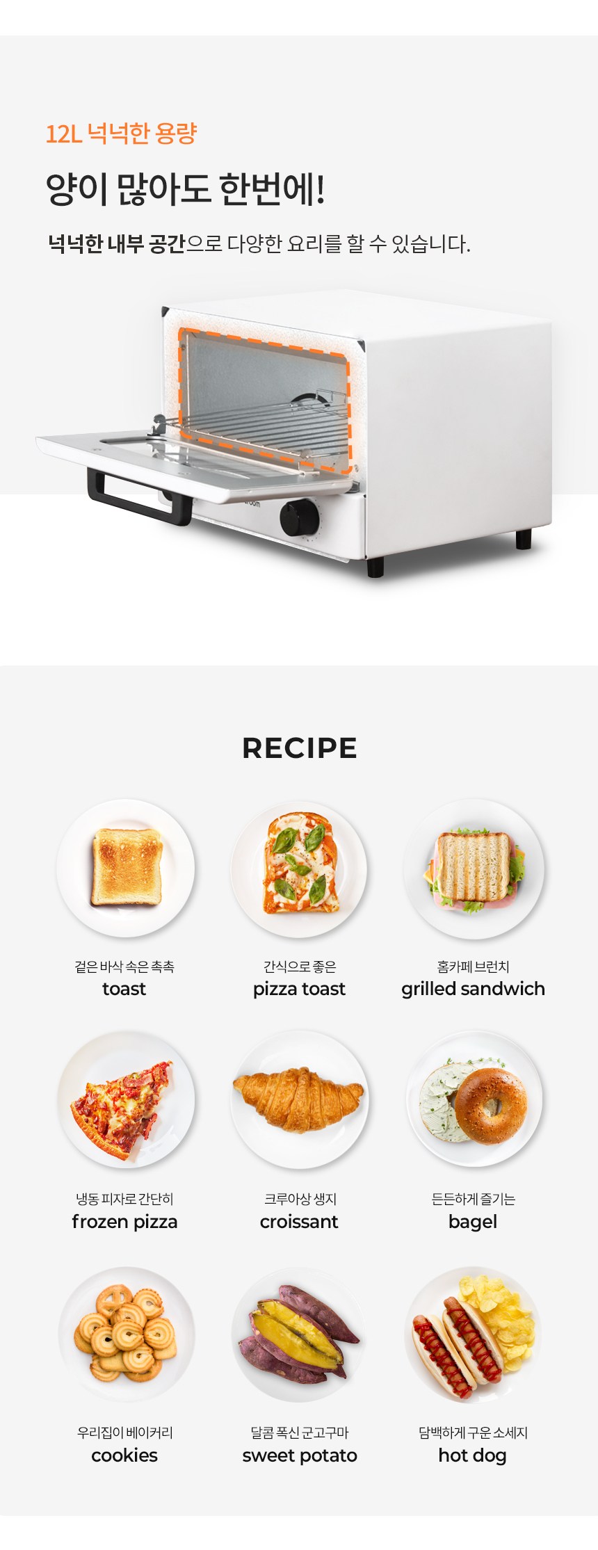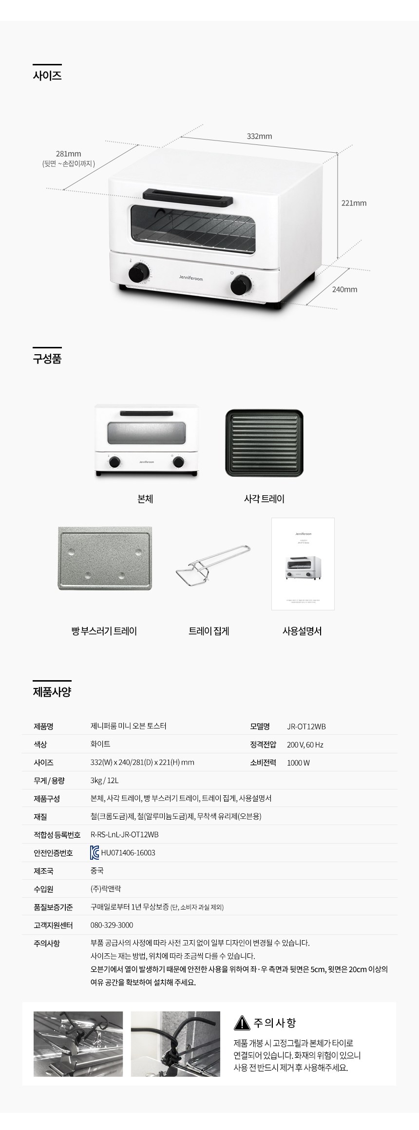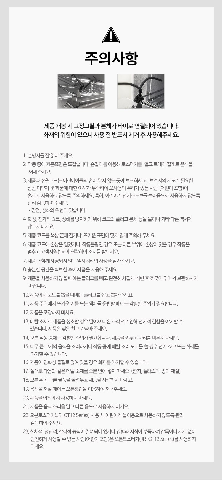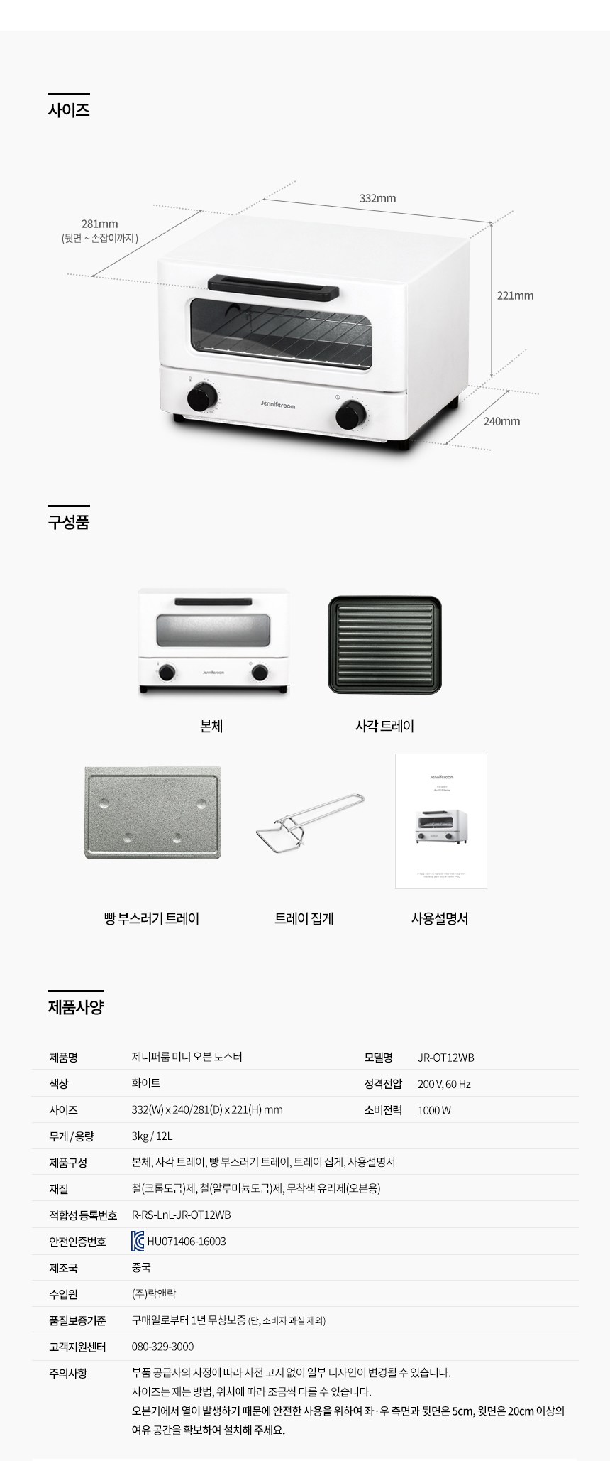 | 품명 및 모델명 | 오븐토스터 / JR-OT12WB | KC 인증정보 | HU071406-16003, R-RS-LnL-JR-OT12WB |