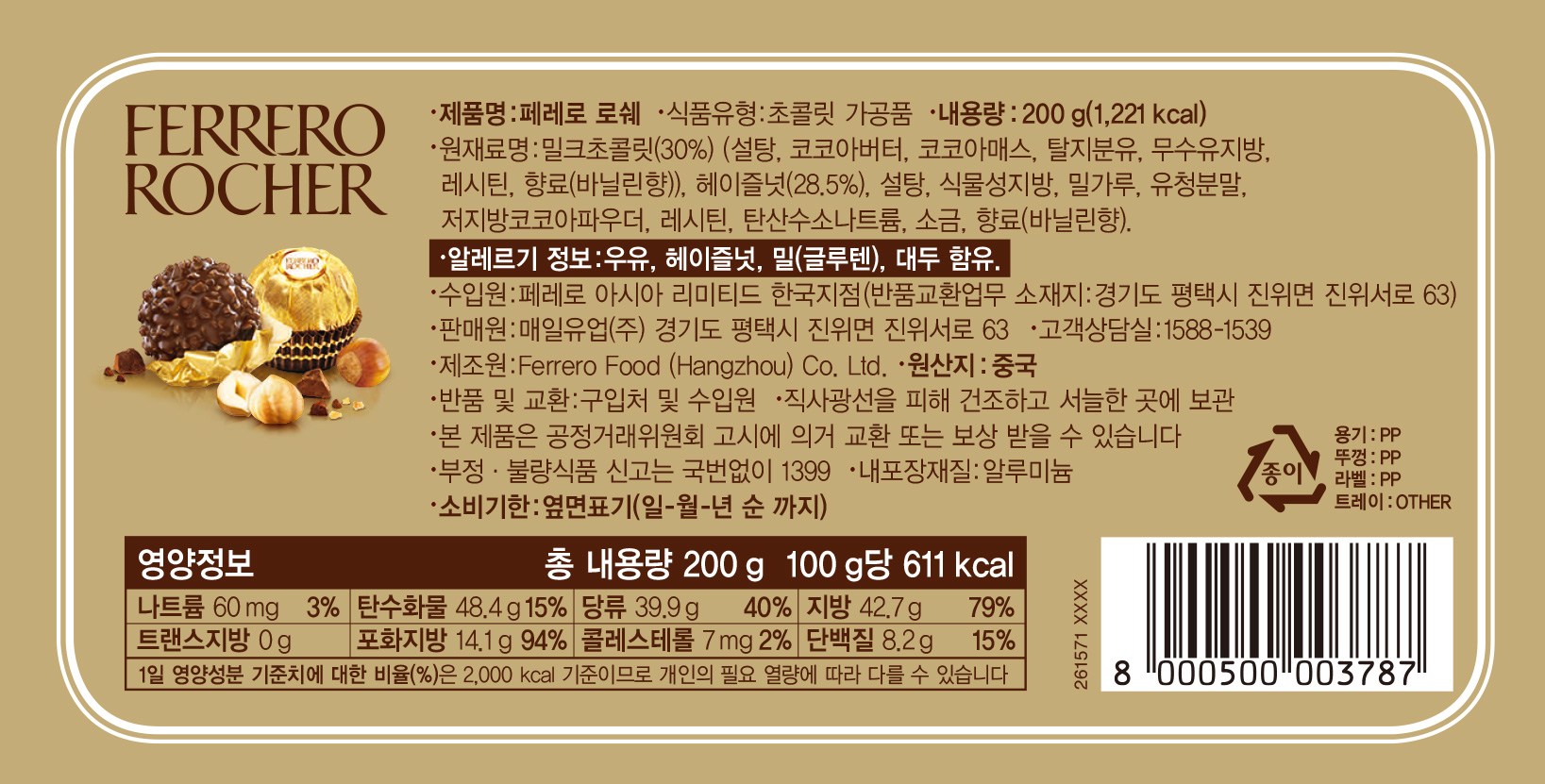 | 제품명 | 페레로 로쉐 200g | 식품의 유형 | 컨텐츠 참조 |