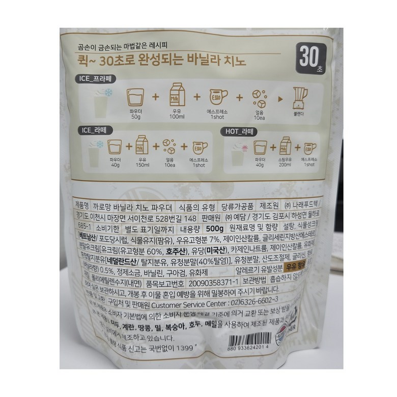 | 제품명 | 상품 상세페이지 참조 | 식품의 유형 | 상품 상세페이지 참조 |