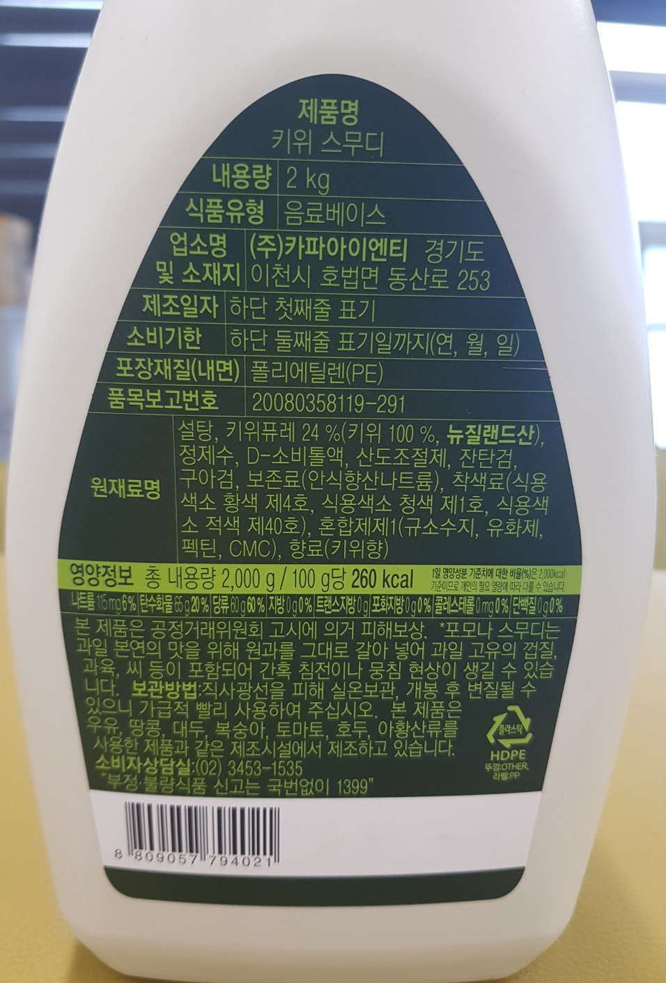 | 포장단위별 내용물의 용량(중량), 수량 | 2kg | 원재료명 및 함량 | 컨텐츠 참조 |