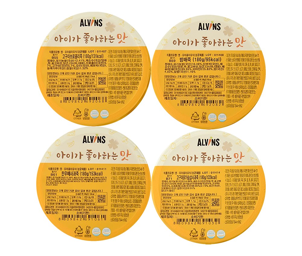 맛: (고구마닭가슴살사과죽 + 고구마브로콜리죽 + 한우배사과죽 + 밤배죽) x 180g × 1세트