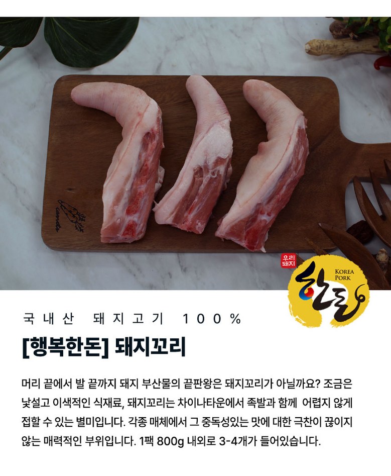 | 생산자(수입자) | 농업회사법인(주)행복한돈 | 원산지 | 국내산 100% |