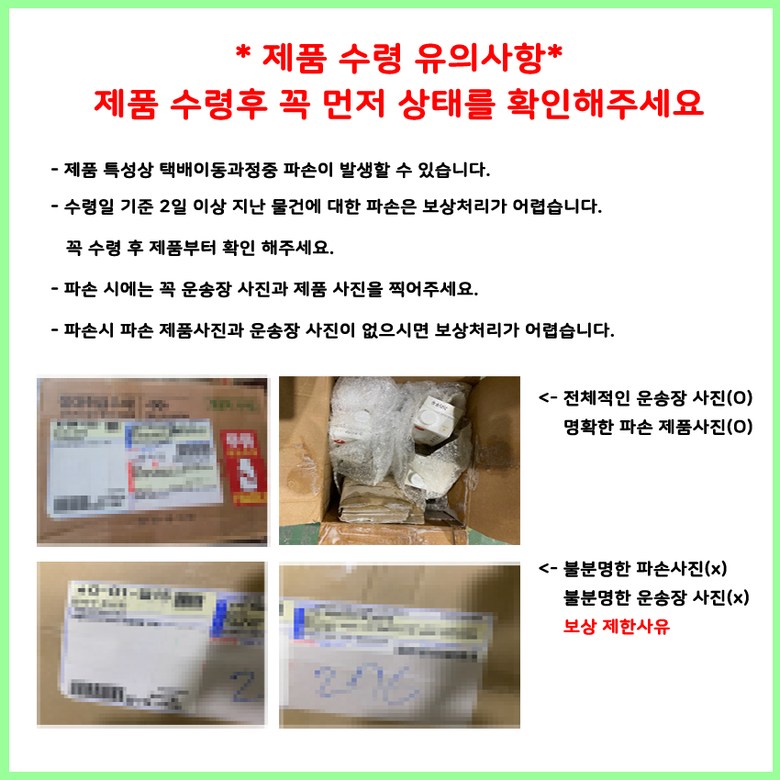 - ㆍ모니터 해상도의 차이로 인해 색상이나 이미지가 실제와 달라, 고객이 단순 변심으로 교환/반품을 무료로 요청하는 경우