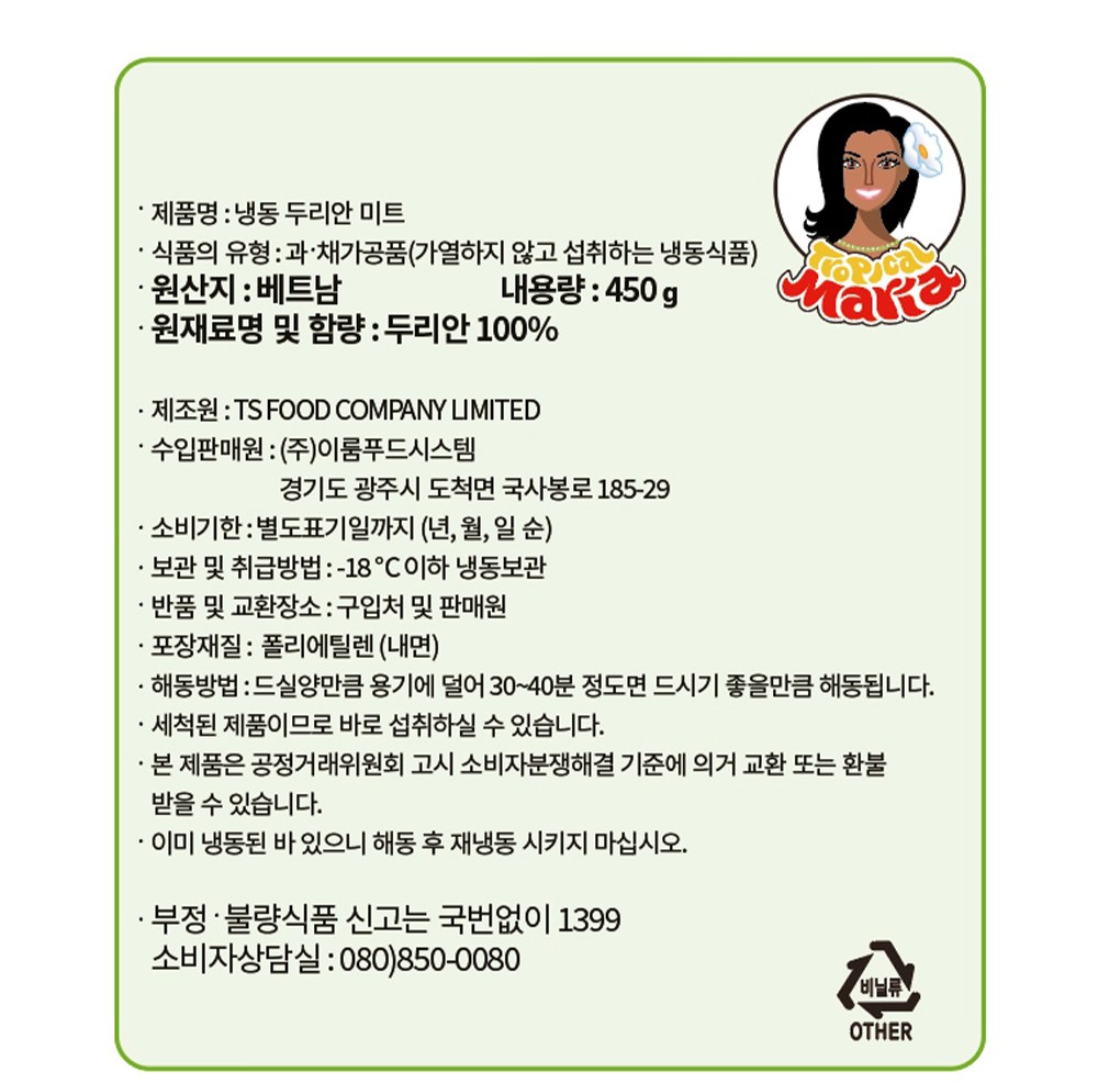 한 번 빠지면 헤어 나올 수 없는 특별한 맛, 두리안. 간편하게 먹을 수 있도록 냉동 두리안으로 만나보세요. 잘 익은 두리안을 손질하고 과육을 냉동해 고유의 생생한 맛을 품었답니다. 이색적인 그 맛이 입안 가득 오래도록 여운을 남겨줄 거예요.