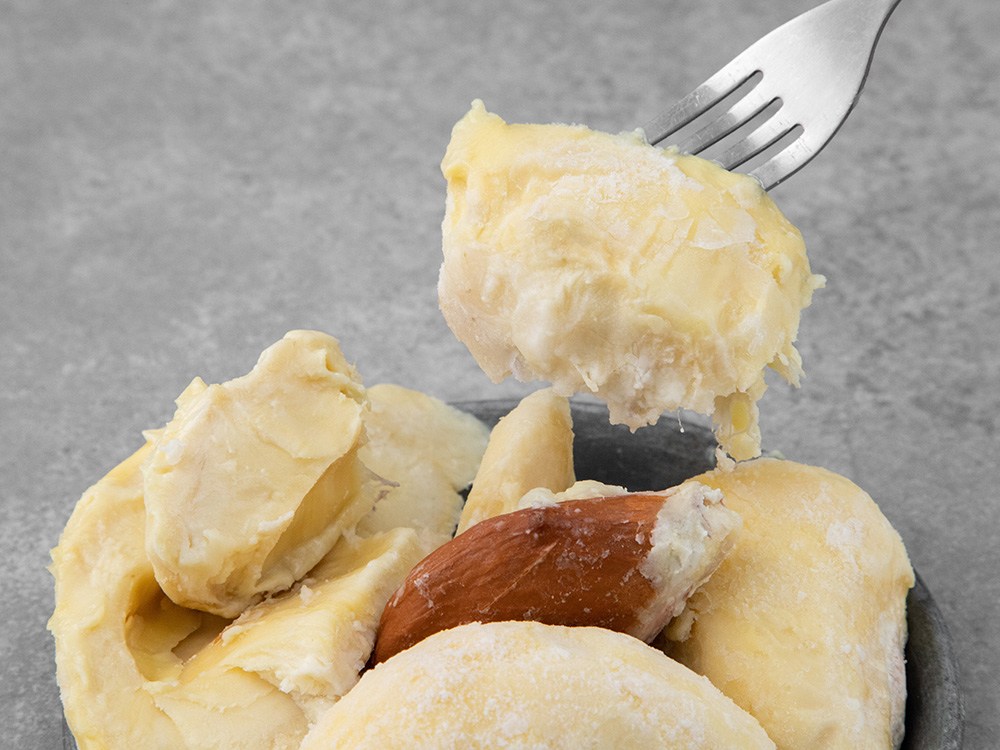1. 냉동 상태의 두리안을 살짝 해동한 후 씨를 제거합니다.