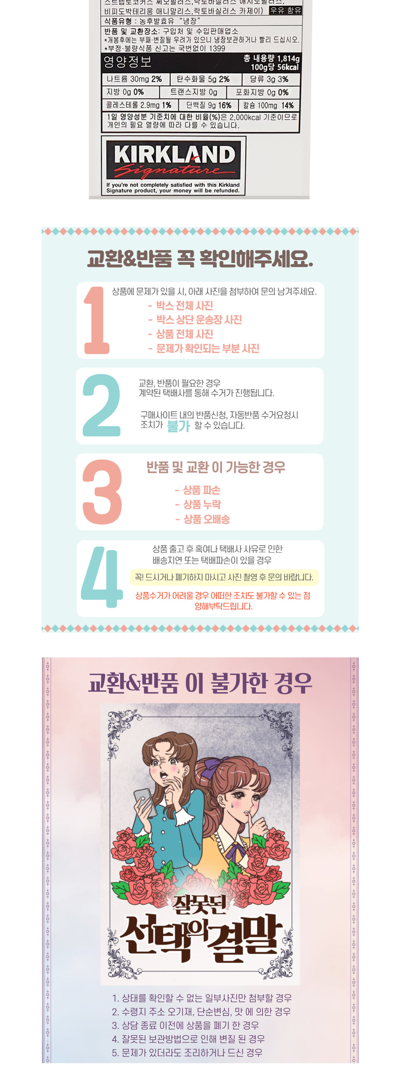 - ㆍ모니터 해상도의 차이로 인해 색상이나 이미지가 실제와 달라, 고객이 단순 변심으로 교환/반품을 무료로 요청하는 경우