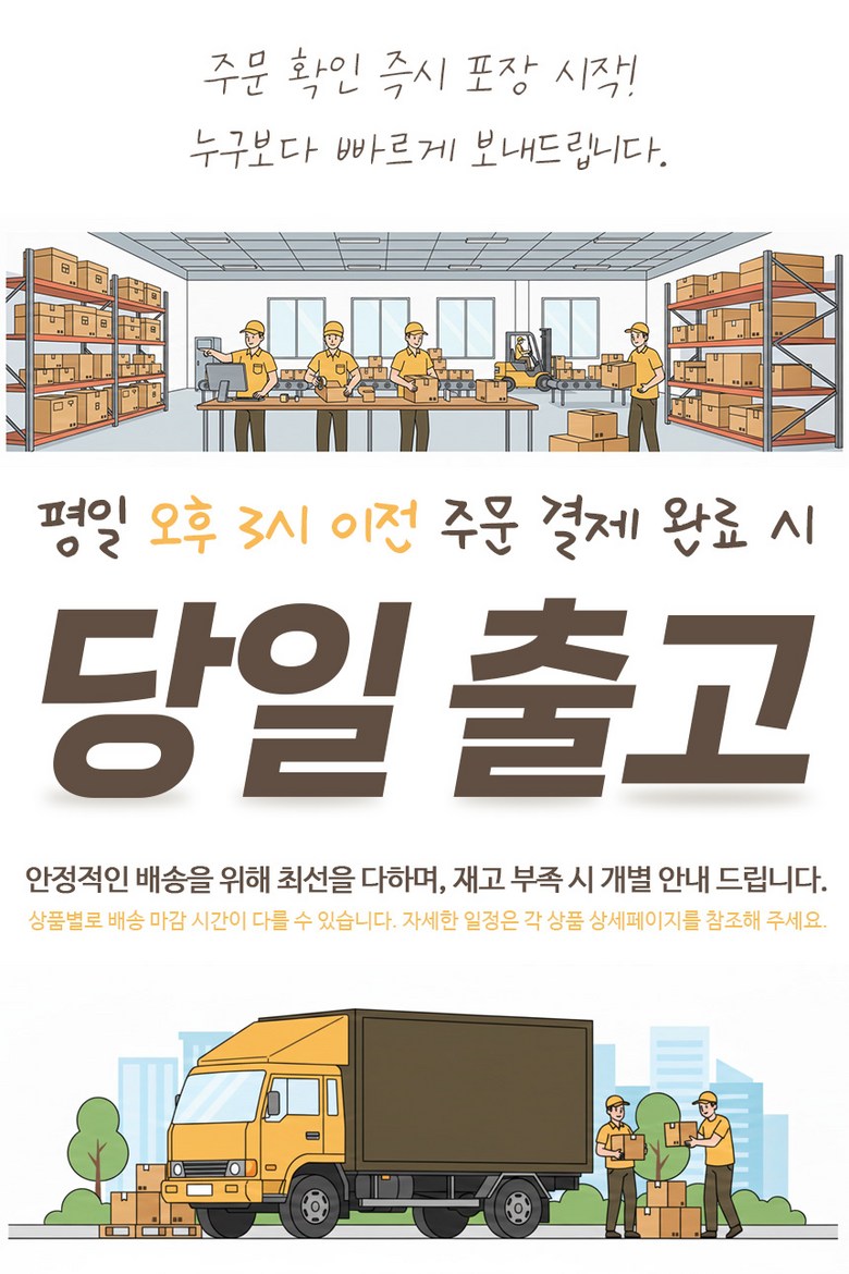| 배송기간 | ㆍ도서산간 지역 등은 배송에 3-5일이 더 소요될 수 있습니다. - 천재지변, 물량 수급 변동 등 예외적인 사유 발생 시, 다소 지연될 수 있는 점 양해 부탁드립니다. | ||