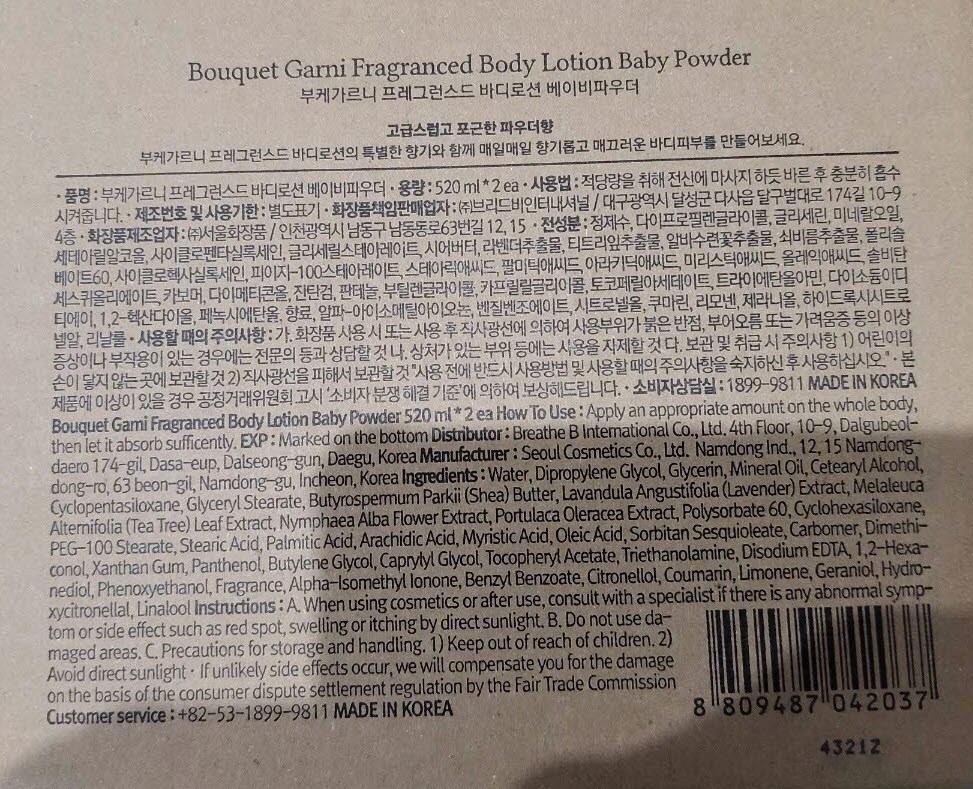 | 화장품제조업자, 화장품책임판매업자 및 맞춤형화장품판매업자 | 컨텐츠 참조 | 제조국 | 대한민국 |