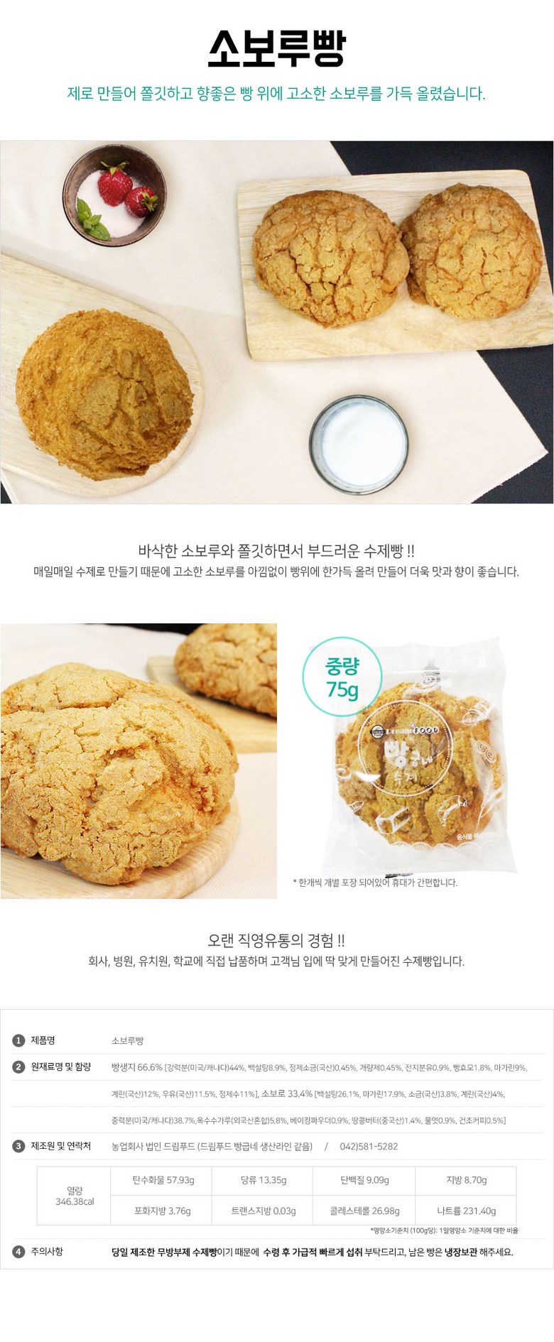 | 제품명 | 수제 소보루빵 10개 | 식품의 유형 | 빵 |