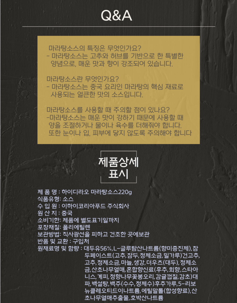 | 생산자 및 소재지 | 상품 상세페이지 참조 | 제조연월일, 소비기한 또는 품질유지기한 | 상품 상세페이지 참조 |