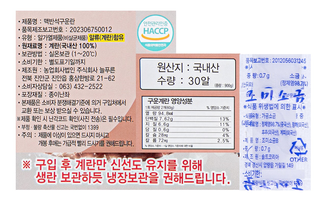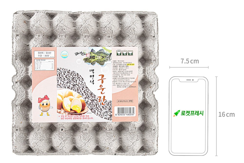 1. 계란의 크기가 작아 보일 수 있으나, 개당 중량 30g 이상의 알찬 구운란으로 구성되어 있는 제품이니 참고해주세요.