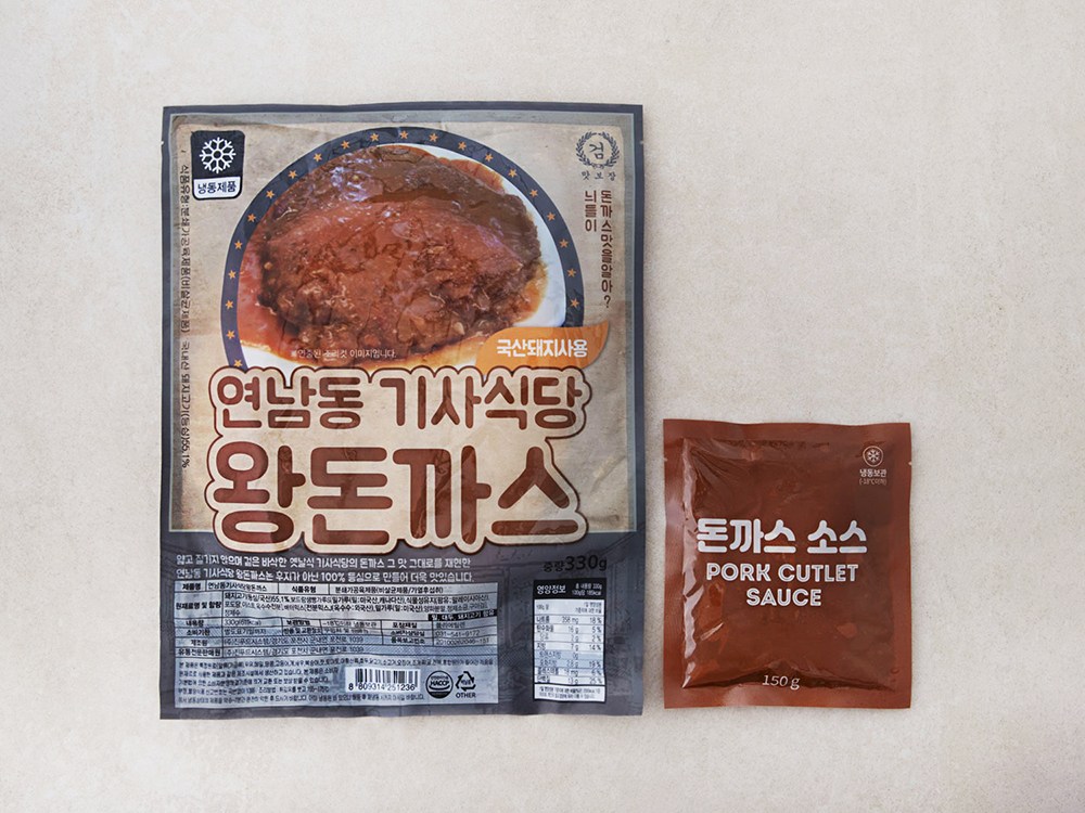 경양식집에서 찾아볼 수 있던 돈까스를 집에서 즐길 수 있어요. 먹기 좋게 썰어 입에 넣으면, 씹을수록 고소한 감칠맛이 번진답니다. 풍미를 더해 줄 새콤달콤한 소스까지 동봉했어요. 얇고 바삭한 돈까스가 끌리는 날이면 냉동실에서 꺼내 바로 튀겨보세요.