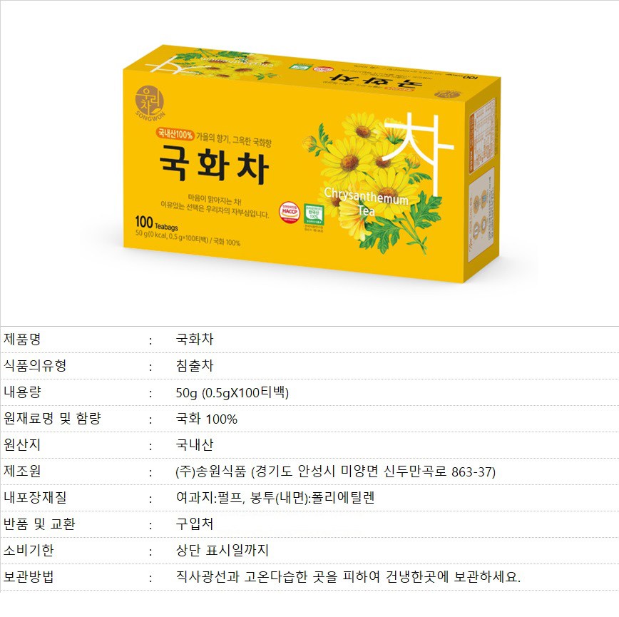 | 제품명 | 국화차 | 식품의 유형 | 침출차 |