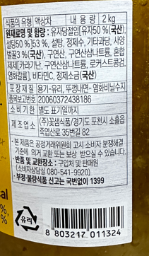 | 포장단위별 내용물의 용량(중량), 수량 | 2kg x 1개 x 2개 | 원재료명 및 함량 | 컨텐츠 참조 |