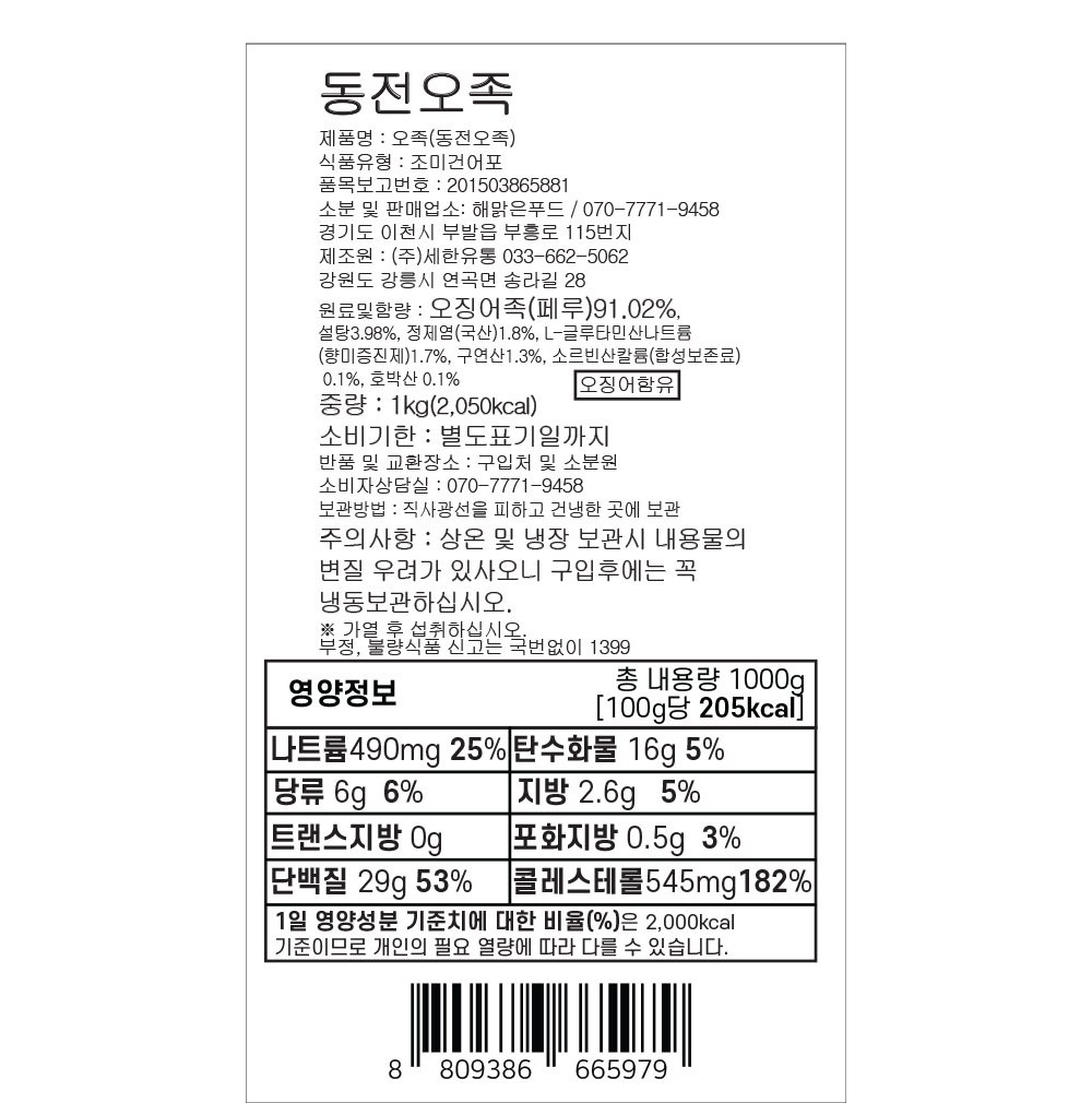 입이 심심할 때, 쫄깃쫄깃한 동전오족을 만나보세요. 맛깔스럽게 조미하고 앙증맞은 동전 모양으로 잘라낸 오징어족이랍니다. 먹기 좋은 사이즈와 두께로 슬라이스 되어 한입에 쏙 넣을 수 있지요.