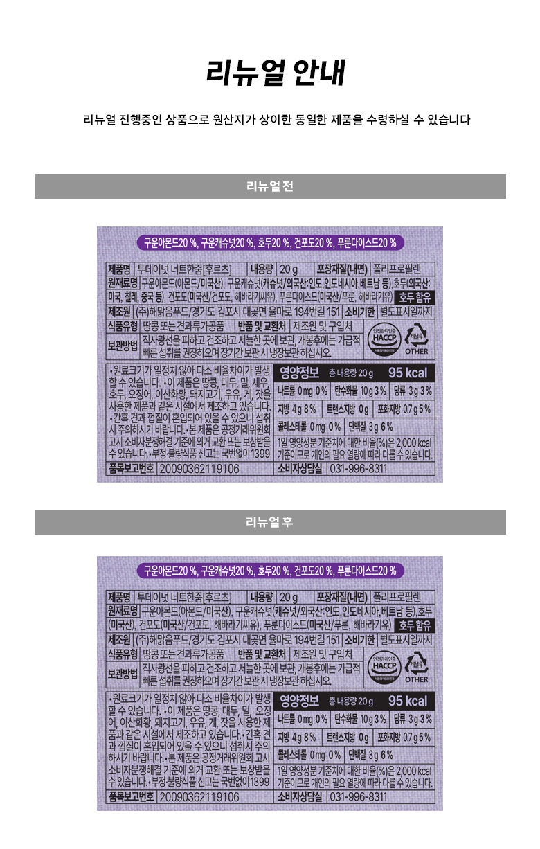 - 견과 종류: 혼합견과(믹스넛)