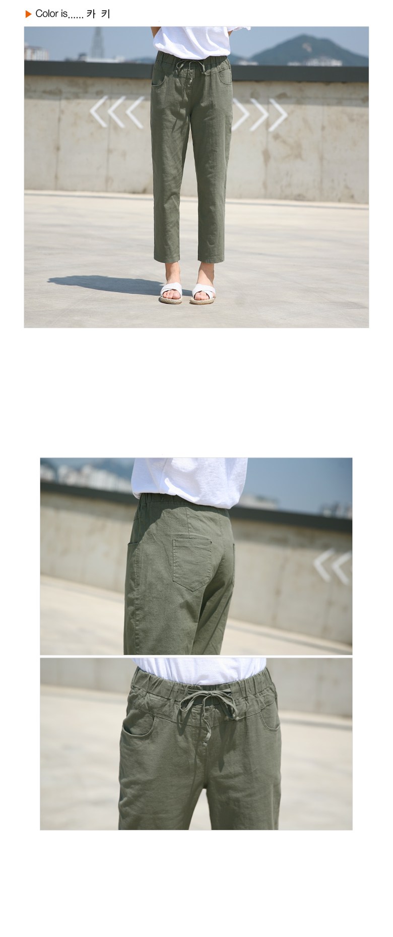" 여자 여름바지 & 면마 스판 통일자핏 8부 밴딩팬츠 "