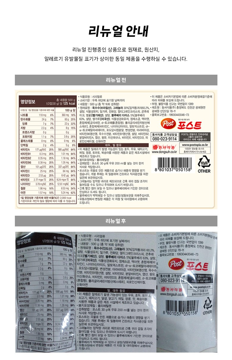 | 제품명 | 포스트 그래놀라 블루베리 시리얼 | 식품의 유형 | 컨텐츠 참조 |