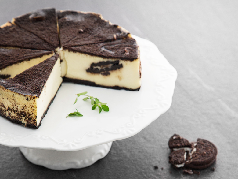 혀끝에서 사르르 스며드는 치즈케익과 고소한 오레오 쿠키가 만나 달달한 조합을 자랑하는 오레오 치즈케익이에요. 밀도 높은 질감의 크림치즈 속 오레오 쿠키 크럼이 달콤하게 씹히는데요. 촉촉하고 부드러운 식감에 자꾸만 손이 가게 되지요. 한 조각씩 분할한 후 담아내어 소중한 사람들과 간편하게 즐길 수 있답니다. 누구나 사랑할 수밖에 없는 기분 좋은 달콤함, 오레오 치즈케익. 언제나 함께하고 싶은 간식이 될 거예요.