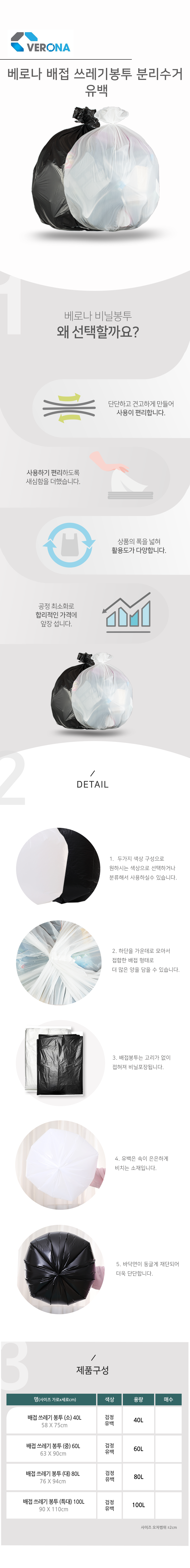 | 품명 및 모델명 | 베로나 배접 쓰레기봉투 유백 100p | 인증/허가 사항 | 해당없음 |