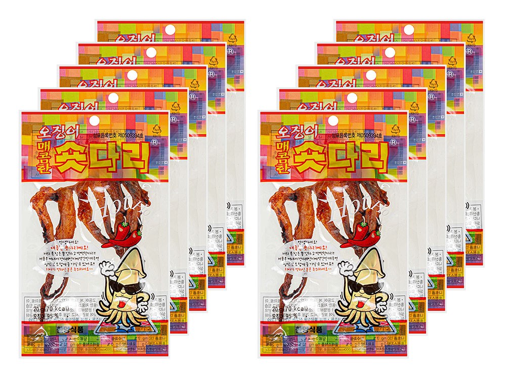 추억의 간식, 오징어 숏다리를 매콤한 맛으로 만나보세요. 쫄깃쫄깃한 식감과 짭조름한 감칠맛이 특징이지요. 입이 심심할 때 간식으로 먹어도 좋고, 시원한 맥주 안주로 곁들여도 잘 어울려요. 전자레인지로 살짝 조리하면 한결 부드럽게 즐길 수 있답니다.