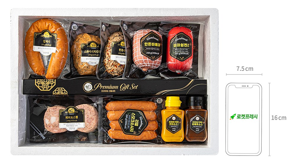 - 구성품: 수제햄 7종 + 겨자소스 + 바베큐소스