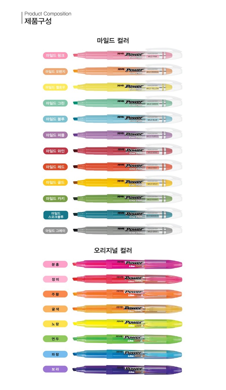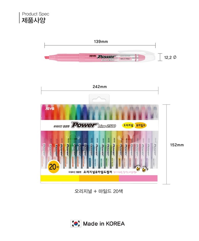 | 품명 및 모델명 | 자바펜 파워라인 형광펜 오리지널+마일드 20색 | 인증/허가 사항 | 해당없음 |