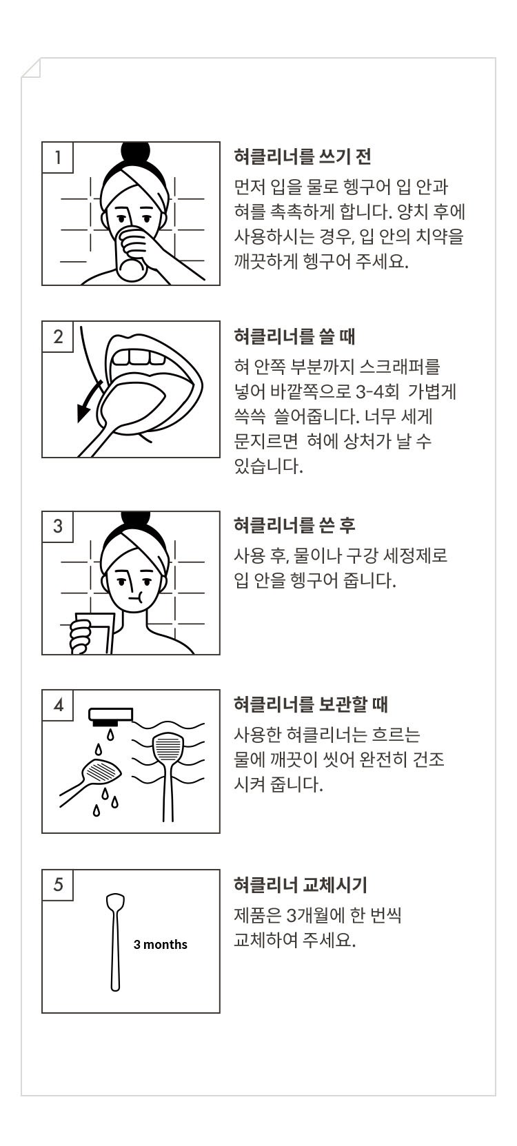 | 품명 및 모델명 | 생활도감 혀클리너 (흰색) | 인증/허가 사항 | 해당없음 |