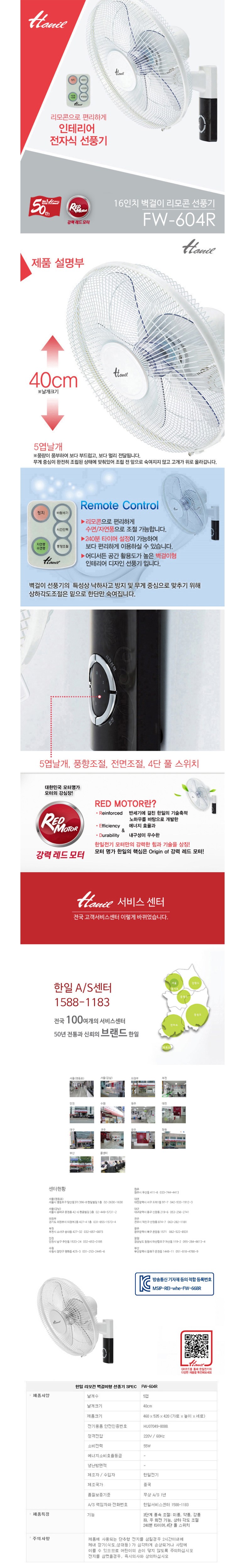 | 품명 및 모델명 | FW-604R 한일벽걸이선풍기 | KC 인증정보 | MSIP-REI-whe-FW-668R |