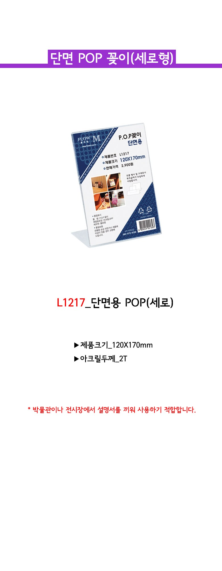 | 품명 및 모델명 | L1217_단면용 POP | 인증/허가 사항 | 해당사항없음 |
