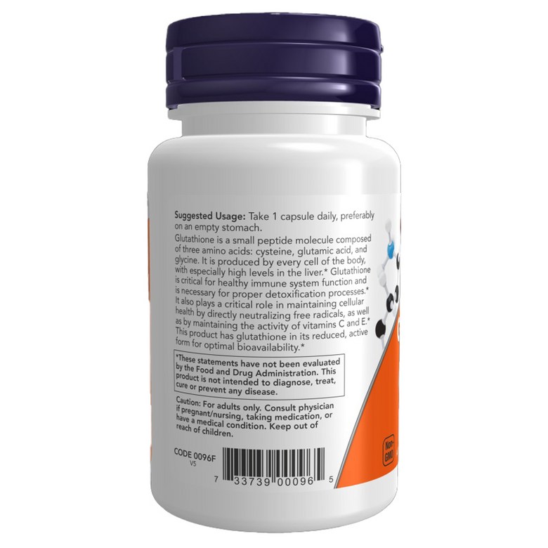 글루타티온이 함유된 식이 보충제입니다. 섭취 및 흡수가 용이한 베지 캡슐 형태로 제공됩니다.