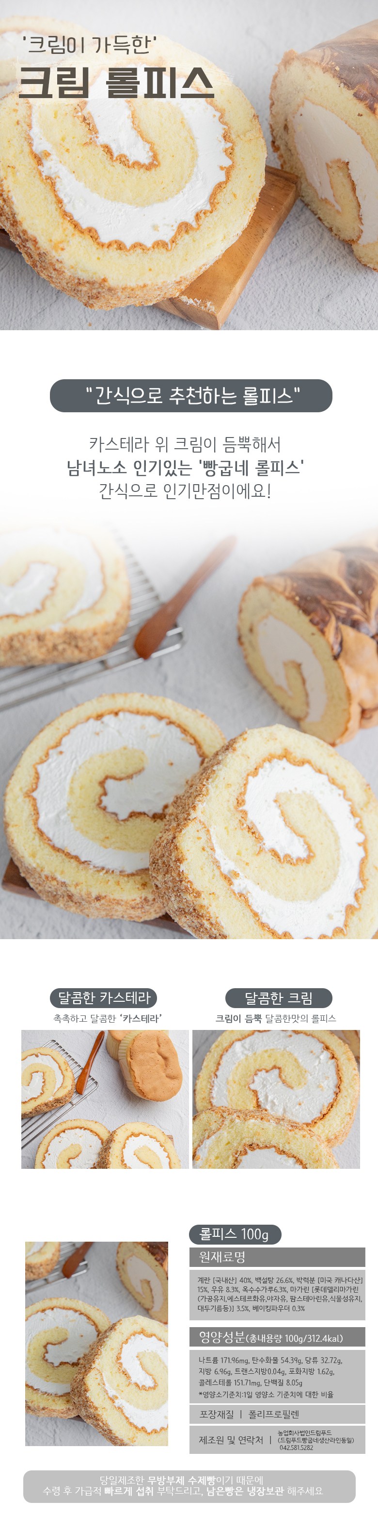 | 제품명 | 수제 롤피스 10개 | 식품의 유형 | 빵 |