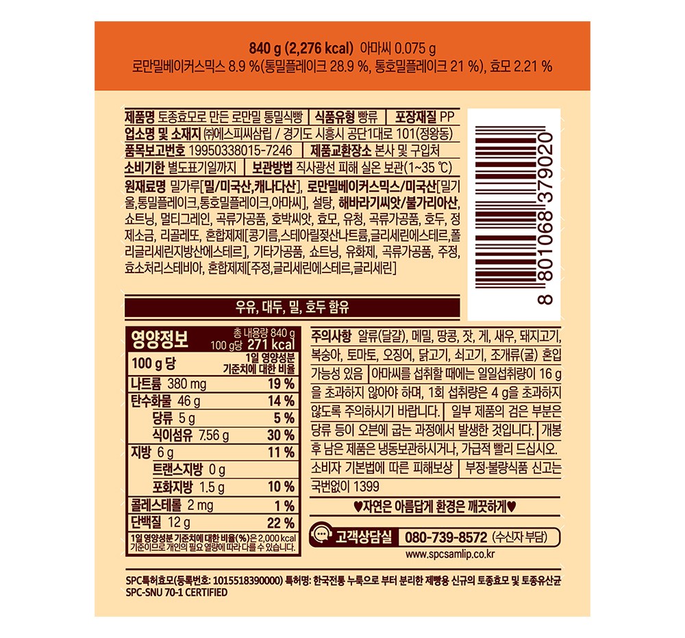 | 제품명 | 토종효모로 만든 로만밀 통밀식빵 | 식품의 유형 | 컨텐츠참조 |